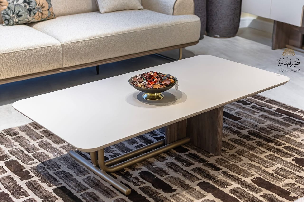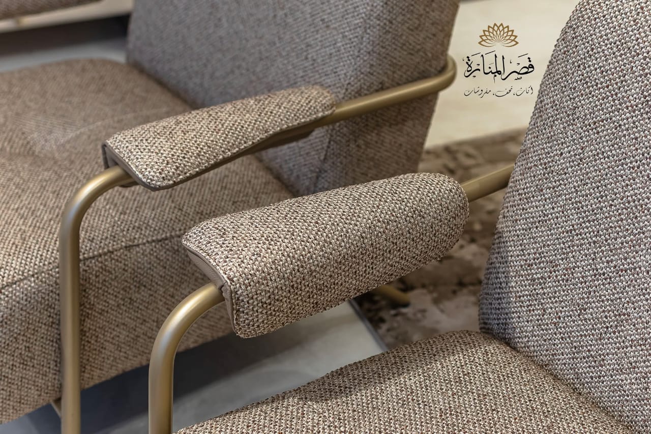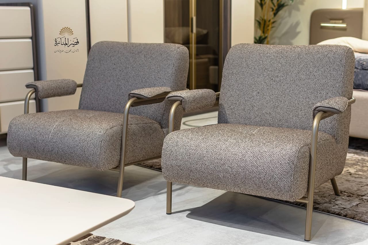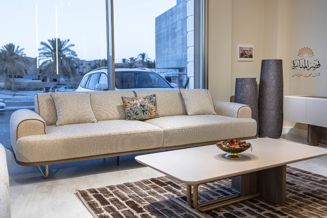 تشكيلة أنيقة تتكوّن من كنبة رباعية وكنبة ثلاثية مع صالونين فرديين، بتصميم مريح وتشطيب راقٍ
